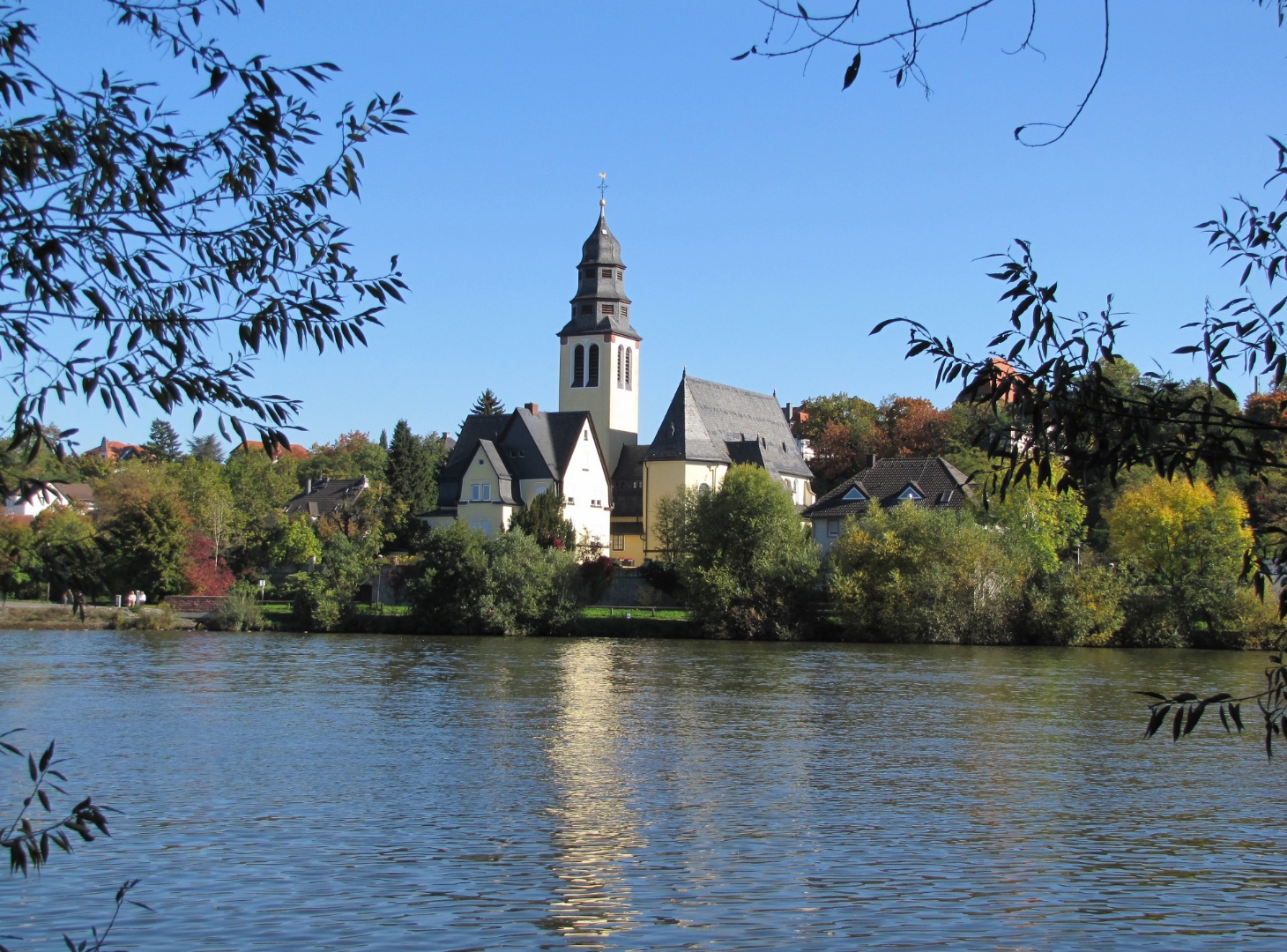 This is 'Herz-Jesu-Kirche' viewed from Frankfurt's riverside of Main