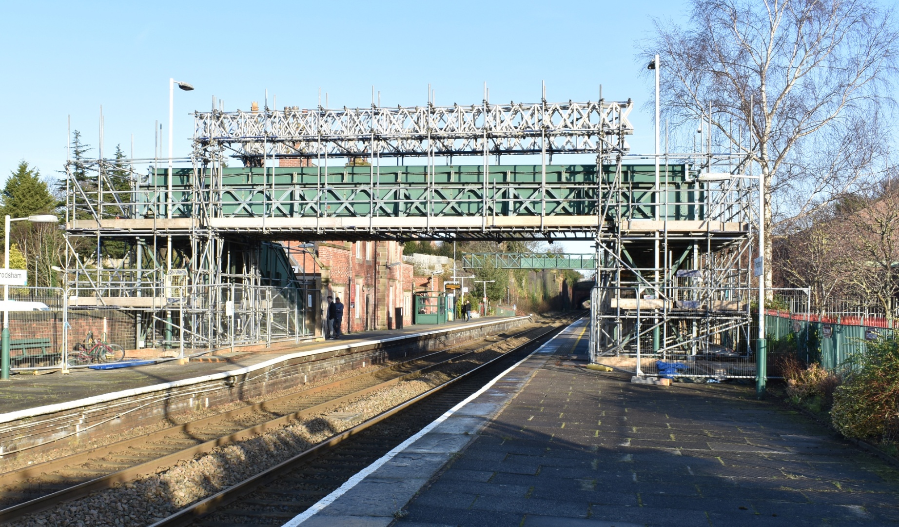 The railways bridge is currently being refurbished. The scafolding will be removed over 5 nights beginning 10th February.