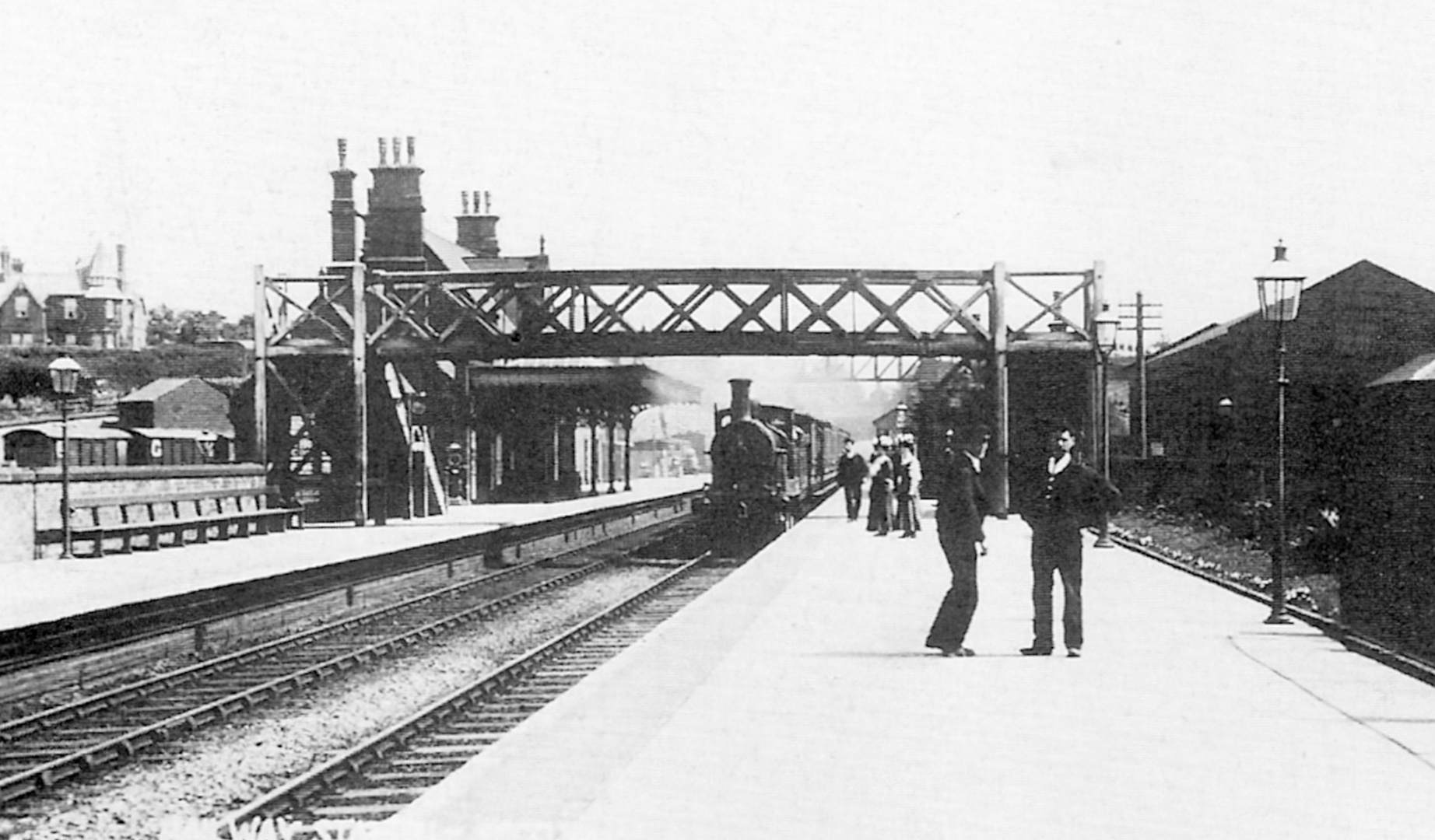 Frodsham station, c.1900. The railway station was a busy when the 20th century dawned. Cattle, potatoes, cheese and all manner of agricultural produce was exported through the goods yard. There was also sidings at the top of Station Road and a busy commuter service ran to Liverpool, Chester and Manchester. The station canopy has long since gone, though the iron bridge still stands. Whilst cattle are no longer allowed on Transport for Wales carriages, you can still re-live that historic packed-in-like-cattle feeling by taking any early morning train to Manchester.